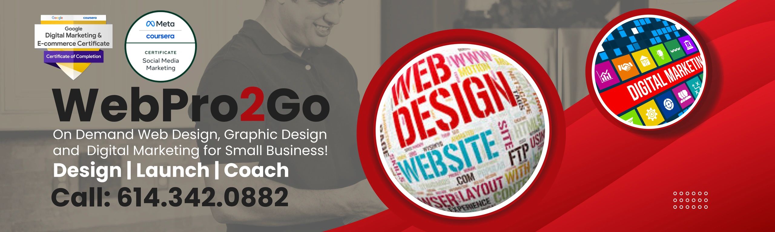 At WebPro2Go, we don't just launch it and forget it. We provide a solution where the business owner stays in the driver seat. Here, we design, launch, teach and coach with the goal that one day the business owners take full control of their marketing strategy and online assets. We bring all the knowledge, experience, and assets including: